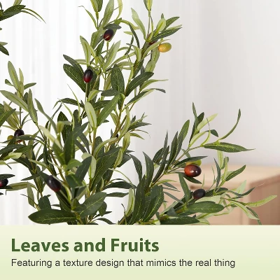 Add a natural touch to your space with this artificial olive tree. Designed to look just like the real thing, it brings the beauty of nature indoors, without the need for watering or maintenance. This faux olive tree stands 5-7 ft tall and comes pre-potted in a oval white plastic planter that’s both stylish and sturdy. The lifelike trunk, leaves, and olives create a realistic look that gently sways in the breeze, adding a soft, calming feel to your room. Perfect for your living room, bedroom, entryway, or office, this tree fits well in any corner and instantly brightens the space. It also makes a great gift for housewarming, Thanksgiving, Christmas, or any special celebration. Enjoy the look of greenery all year round starting today!