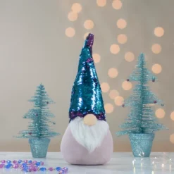 Northlight Gnome With Flip Sequin Hat Christmas Decoration – 17.5″ – Purple And Blue