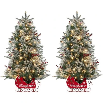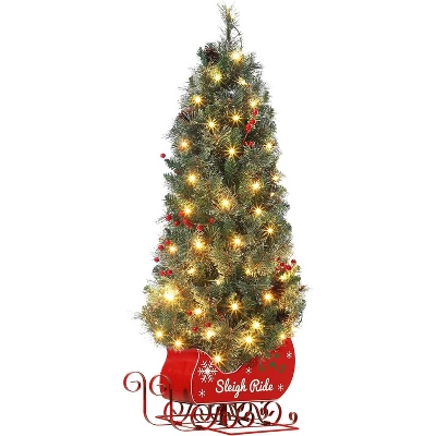 Standing at 4.5 feet tall, this Christmas tree offers a lush, lifelike appearance with hundreds of individually crafted branch tips that create full-bodied, realistic foliage. The tree features 85 warm white LED lights with 8 lighting modes, including combination, chasing, slow fade, twinkle, sequential, slow glow, waves, and steady on, providing a customizable, festive display. The durable red sled base ensures stability, keeping the tree balanced, and includes a timer for automatic operation¡ªlighting up for 6 hours and turning off for 18 hours. Made from flame-retardant, odorless, non-allergenic PVC and PE materials, this tree is safe and perfect for any space. Whether placed in your home, office, or porch, it adds a strong festive atmosphere, making it an excellent gift choice for friends and family.
