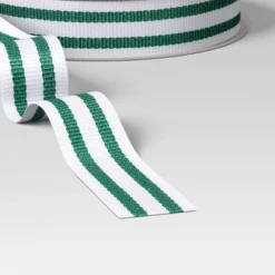 18′ Christmas Fabric Ribbon Grosgrain White/Green Stripes – Wondershop™