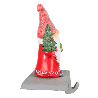 - This gnome stocking holder blends whimsy with practicality. Its eye-catching design features a long white beard, a red outfit, and a festive wreath, making it the perfect holiday accent. The gray base offers stability while the playful gnome design brings joy to your seasonal décor.
