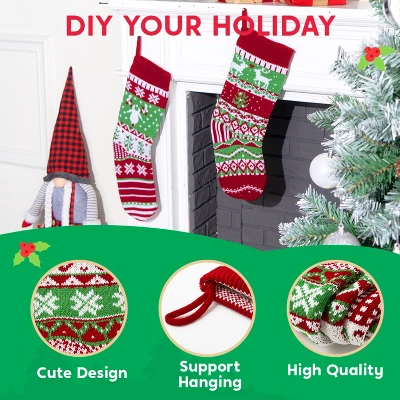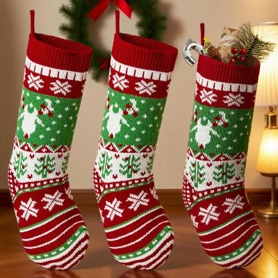 - Make your holidays merry with our 3-pack knit stockings, featuring classic red & green colors, perfect for Christmas festive decor and thoughtful gifting.