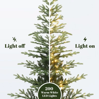 Bring classic holiday charm to your space with this 5.5-foot Pre-Lit Artificial Fir Christmas Tree, crafted with a premium blend of PE and PVC materials to replicate the lush, natural form of a real fir tree. Its dense green foliage creates a timeless Christmas silhouette ideal for festive indoor decor. Pre-installed with 200 warm white LED lights, this tree casts a cozy, romantic glow, perfect for transforming your living room, entrance, or office into a cheerful seasonal retreat. The two-section hinged branch design allows for quick and effortless setup, while the round flower pot base adds both stability and style with a modern decorative flair. Whether used as a central holiday accent or a complementary festive touch, this artificial Christmas tree offers enduring beauty and joyful ambiance for gatherings and celebrations alike..