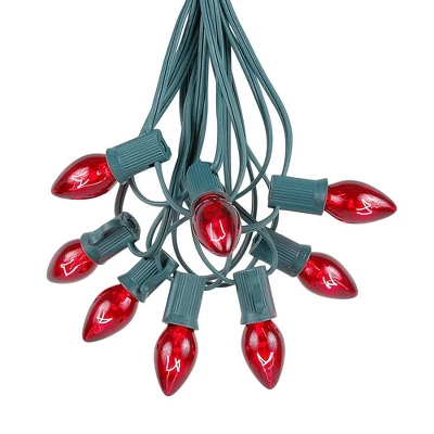 Novelty Lights twinkling C7 Christmas string light set for your holiday decorating needs. These holiday light sets are perfect for outdoor patios, decks, special event or Christmas lighting. Each set includes 25 long life random twinkle C7 bulbs on a green wire stringer with 25 sockets that are spaced 12″ apart. These durable twinkling C7 Christmas lights have long lasting 3,000 hour bulbs and are on a 20 gauge green wire. These durable and heavy duty C7 outdoor light strings will provide you with years of maintenance free use.