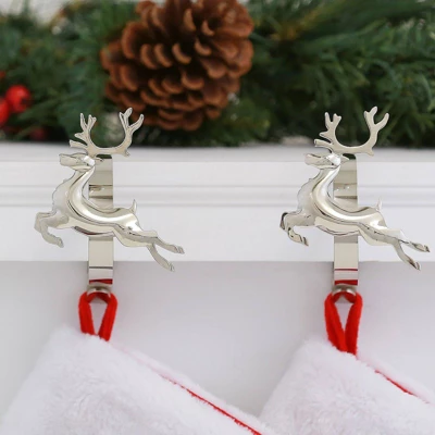 Original MantleClip 2ct Christmas Stocking Holder With Reindeer Icons Silver: Fits Up To 3″ Mantels, Protective Pads