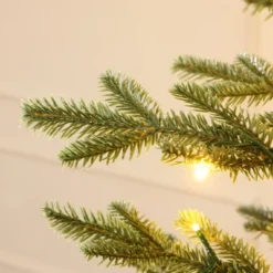 LuxenHome 5.5Ft Pre-Lit Artificial Fir Christmas Tree, Realistic Green Branches & Decorative Planter