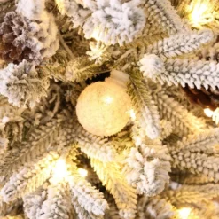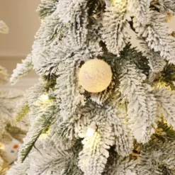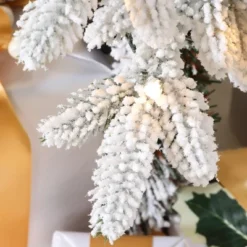 LuxenHome 4Ft Artificial Flocked Fir Christmas Tree Potted With Battery-Operated Lights Green