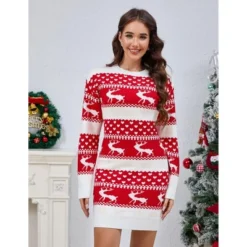 - ❄ Features: Adorned with a playful reindeer and snowflakes print, this holiday mini sweater dress adds a festive touch to your winter wardrobe.