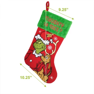 Make your Christmas extra special with our How the Grinch Stole Christmas 20″ Applique Christmas Stocking featuring The Grinch with Max wearing Reindeer antlers. Built to last with high quality materials and construction. Features vibrant colors and applique features that catch the eye and “pop” with added dimension. An absolute must-have for any Dr. Seuss and How the Grinch Stole Christmas fan. WondaPop offers the finest Christmas dcor and accessories to help create lifelong memories with your family this holiday season. Christmas stockings, Santa hats, tree ornaments, and more! Personalize your Christmas with the perfect gift for family or friends. Featuring officially licensed film and television characters for all ages, you can deck the halls for yourself or the whole family this season with unique artwork of all your favorites.